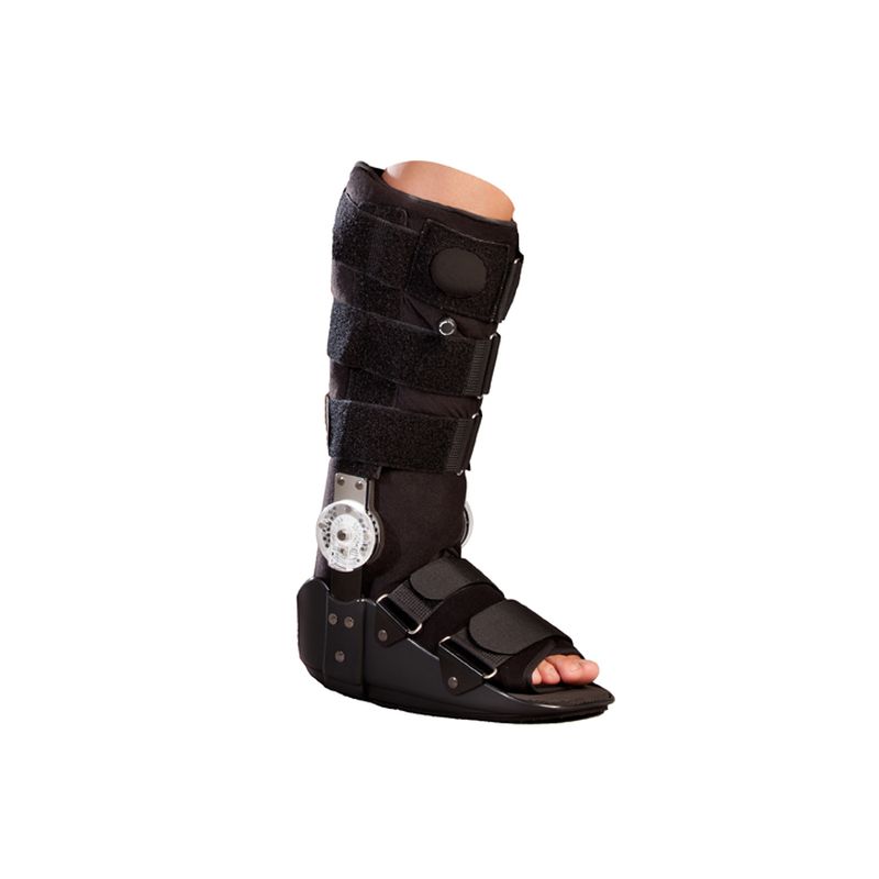 Νάρθηκας ποδοκνημικής, τύπου μπότα, κατασκευασμένος από ελαφρύ και άκαμπτο πλαστικό υψηλής ποιότητας και αντοχής. Περιέχει εσωτερική επένδυση από μαλακό ύφασμα και αφρολέξ, προσφέροντας μεγαλύτερη άνεση. Διαθέτει πολυκεντρικό μηχανισμό για τον έλεγχο της κάμψης και της έκτασης της ποδοκνημικής άρθρωσης ανά 7.5o.